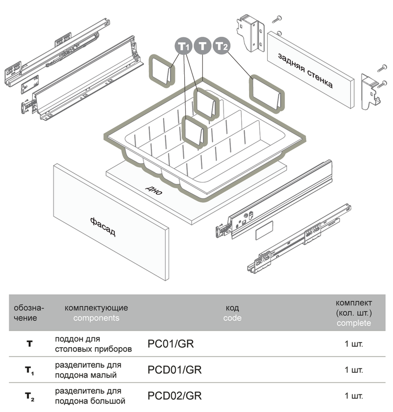 Поддон для выдвижного ящика PC01/GR/530x480