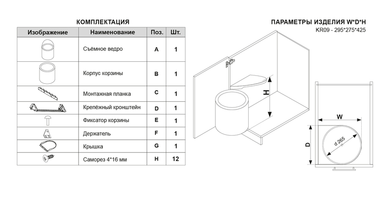 Мусорное ведро для распашных фасадов BIN KR09/1/0/450